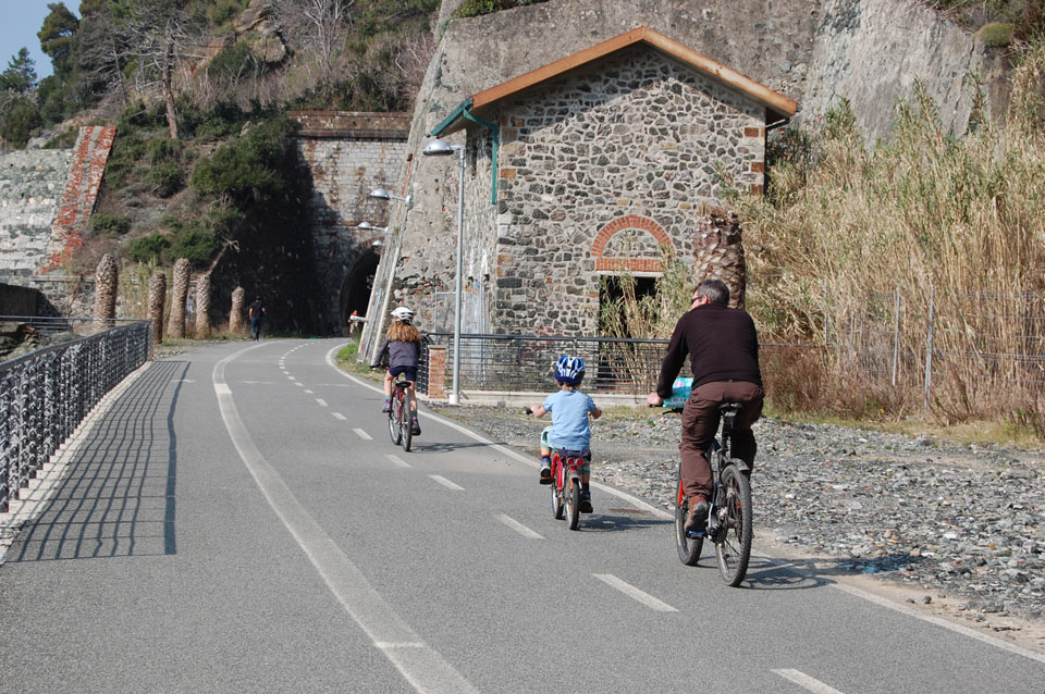 Prenez le chemin qui du restaurant descend jusqu'à la piste cyclo-piétonne. Le parcours est plat et mesure 5,7 km environ. Il relie Levanto, Bonassola et Framura sur l'ancienne voie ferrée de 1874. Les tunnels ont été restaurés et éclairés (chemins séparés pour piétons et cyclistes), offrant des vues superbes sur la mer. On peut louer un vélo à Bonassola pour parcourir cet itinéraire côtier vraiment unique.